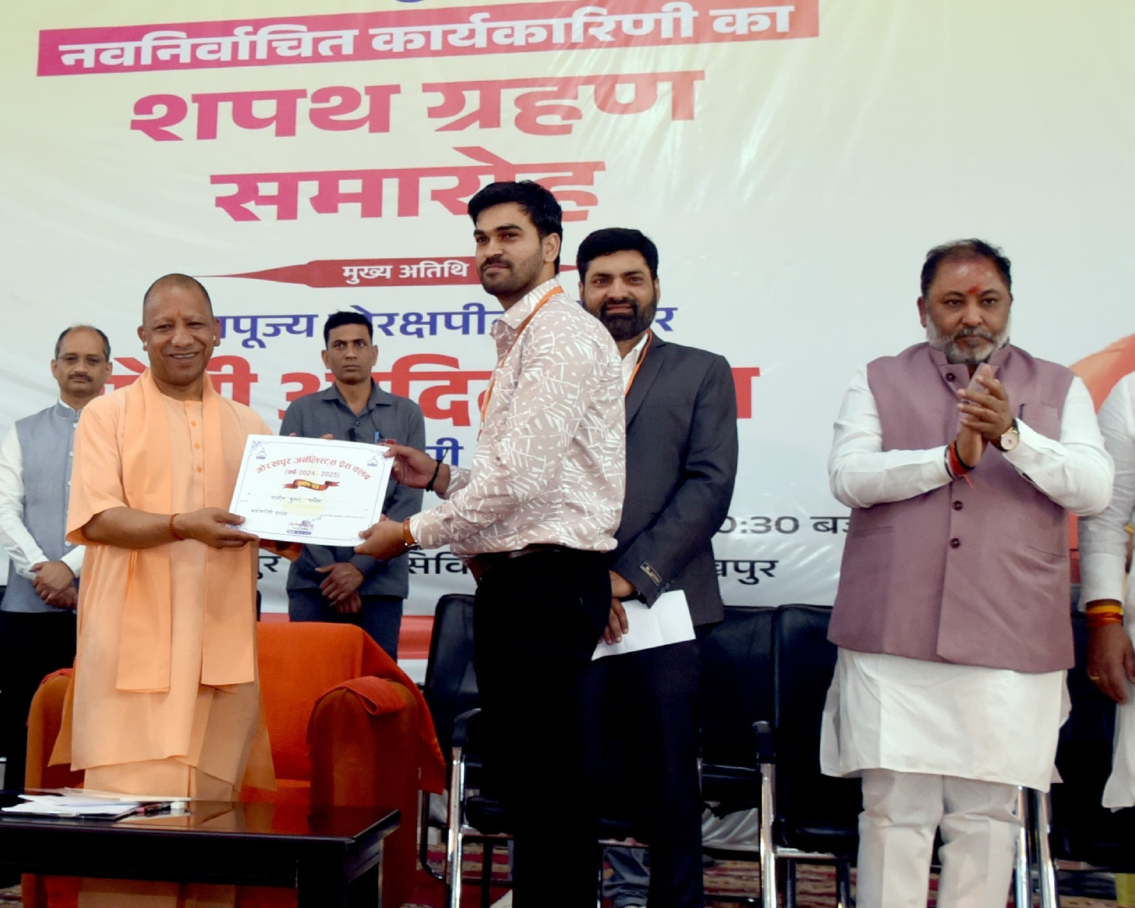 गोरखपुर में आयोजित गोरखपुर जर्नलिस्ट्स प्रेस क्लब की नवनिर्वाचित कार्यकारिणी के शपथ ग्रहण समारोह में शामिल हुए मुख्यमंत्री योगी